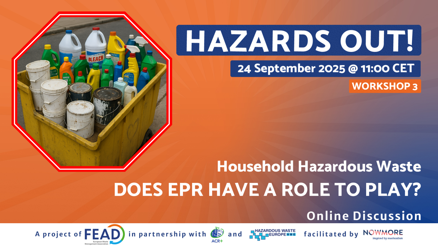 On 24 September 2025, the third Hazards Out! Workshop explored the topic of Extended Producer Responsibility (EPR) and whether it can play a role in managing household hazardous waste (HHW). Discussions highlighted producers’ perspectives and innovative recycling initiatives. A case study from the Netherlands showcased collaboration between AkzoNobel and Inter-CheM, who developed a professional-grade paint containing 35% recycled content, reducing carbon emissions by 32%. Presenters emphasized that consumer awareness, convenient collection systems, and cross-sector collaboration remain critical to scaling such solutions. France’s EcoDDS scheme—the only EPR model for HHW in Europe—was presented as a successful example of industry-led responsibility. Managing director Pierre Charlemagne outlined large-scale collection systems, automated sorting, and new treatment pathways for chemical waste, underlining the potential of EPR to share costs, expand infrastructure, and foster circular innovation.